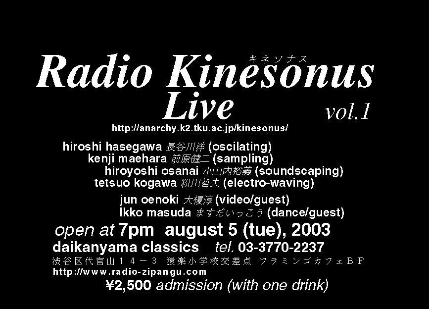 Radio Kinesonus Night vol.1 at Daikanyama Classics, Tokyo