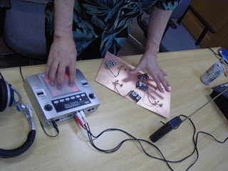 Always I prefer simplicity of machines and instrument with their unexpected complexity. This month, I used 4 transmitters, one stereo radio FM receivers and KAOSS PAD. Every component of 4 transmitters was laid on a fragile thin copper plate that would be usually prohibited. More thicker and no can-be-bent plate must be used for transmitter for the stable frequency and functions. But I appreciated instability deriving from the can-be-bent plate. I recently found that KAOSS PAD (KORG's effector) matches with my hand performance in its controlling interface. I bought it long time ago but didn't use much of it because of the limited functions. Such an insufficiency has turned out to be more viable. This is a paradox of technology.
