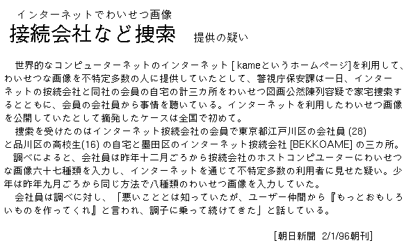 The US government is goint to the Internet censorship. So, their future is here in Japan where the authorities don't hesitate to arrest those who show explicit sexual expression.