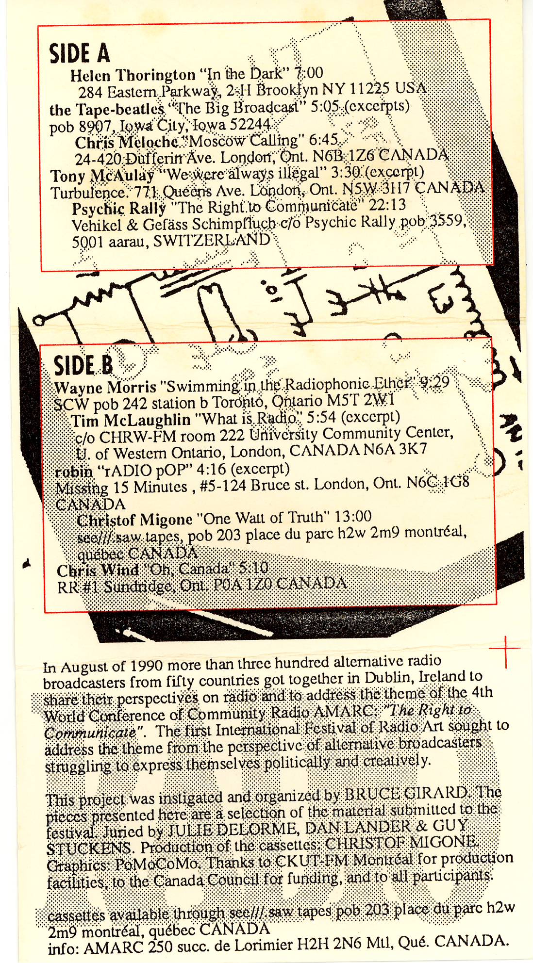 The full and partial recordings of the 17 artists (2 cassettes of 2 hours 47 minutes):