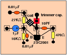 A: I stopped showing the schematic with it because the tunable mold coil (3-4 turns) has become less obtainable now. If you can get it, just install it instead of a hand-made coil WITHOUT the trimmer capacitor.